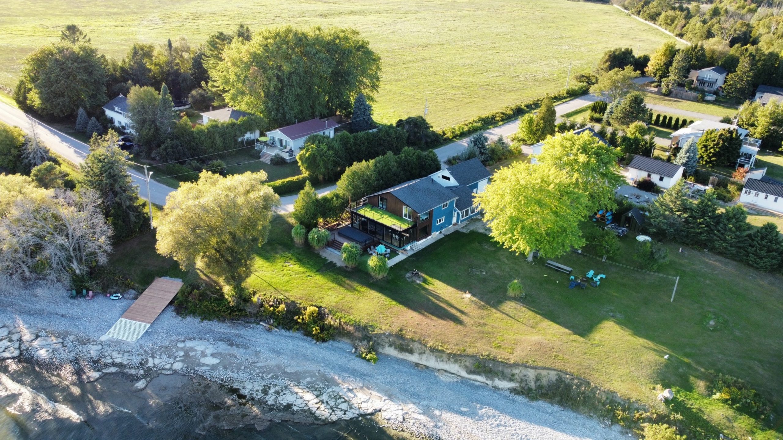 Cobourg itself is a friendly historic town with a lovely promenade, cute boutiques, and a lively waterfront boardwalk. After a stroll through the downtown area you can pop into a local café for a fresh pastry, watch the boats drift by the harbor, or join in the fun of the annual Cobourg Beach Festival. Yet the true treasure is the private stretch of lakefront that belongs to the house – a generous strip of shoreline where you can sit on a deck chair and listen to the soft rhythm of the lake.